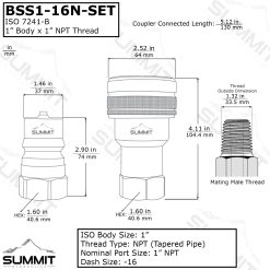 1″ NPT ISO 7241-B Stainless Steel Quick Disconnect Hydraulic Female Coupler