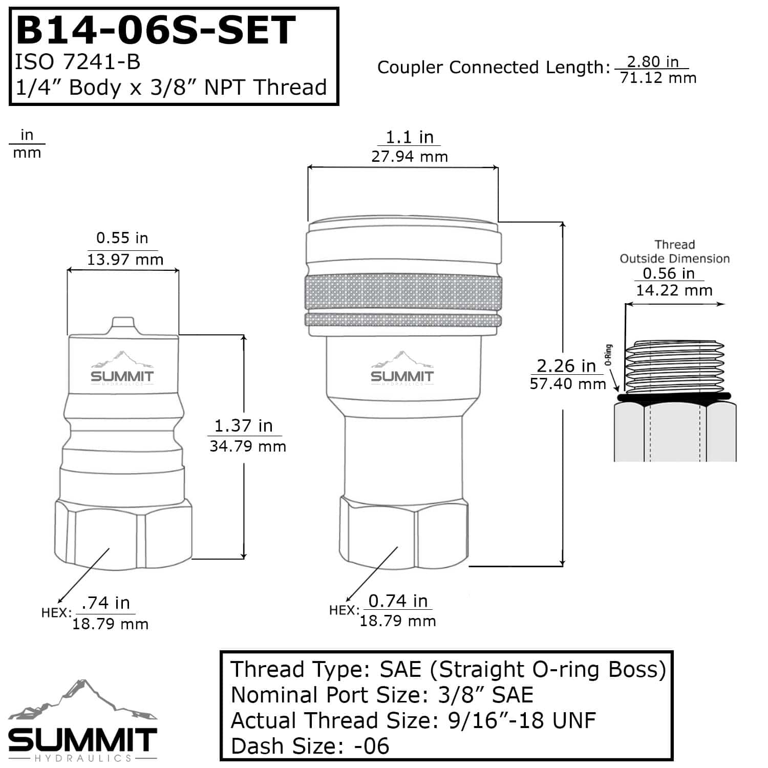 The ISO 7241 B Series of quick disconnect couplers are used on a large spectrum of hydraulic applications with strenuous quality standards such as the aerospace, automotive, electronics industries. They are also recommended for general purpose, machine tools, mobile hydraulics, and other equipment applications. Our Series B couplers are interchangeable with all ISO 7241 B series couplings.