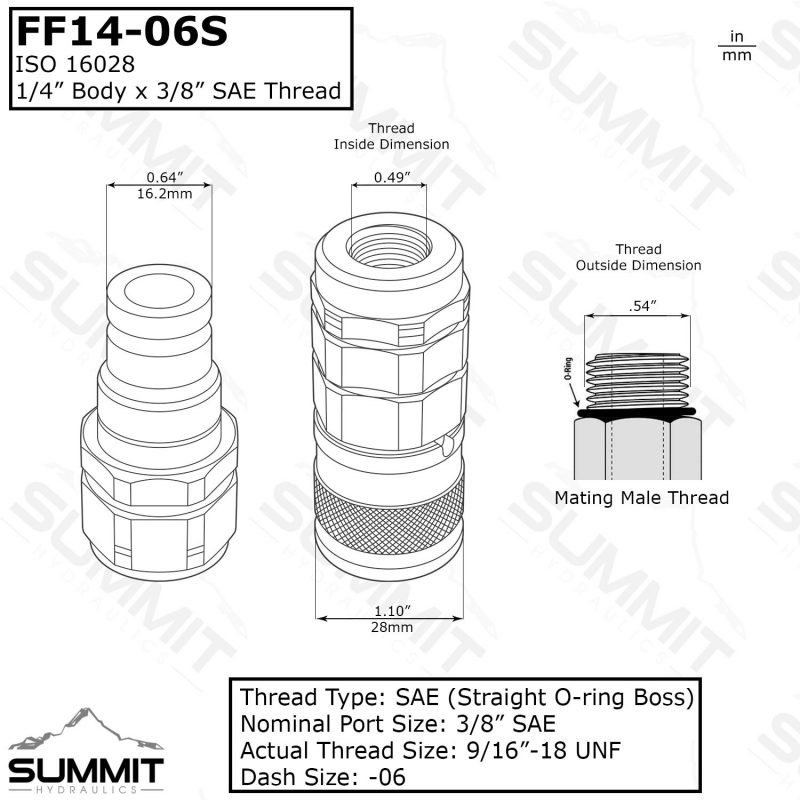 - Female Face Diameter: 1.10” (28mm)