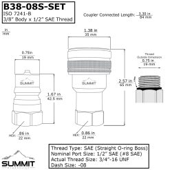 3/8″ ISO 7241-B Quick Disconnect Hydraulic Coupler Set, 1/2″ SAE Thread