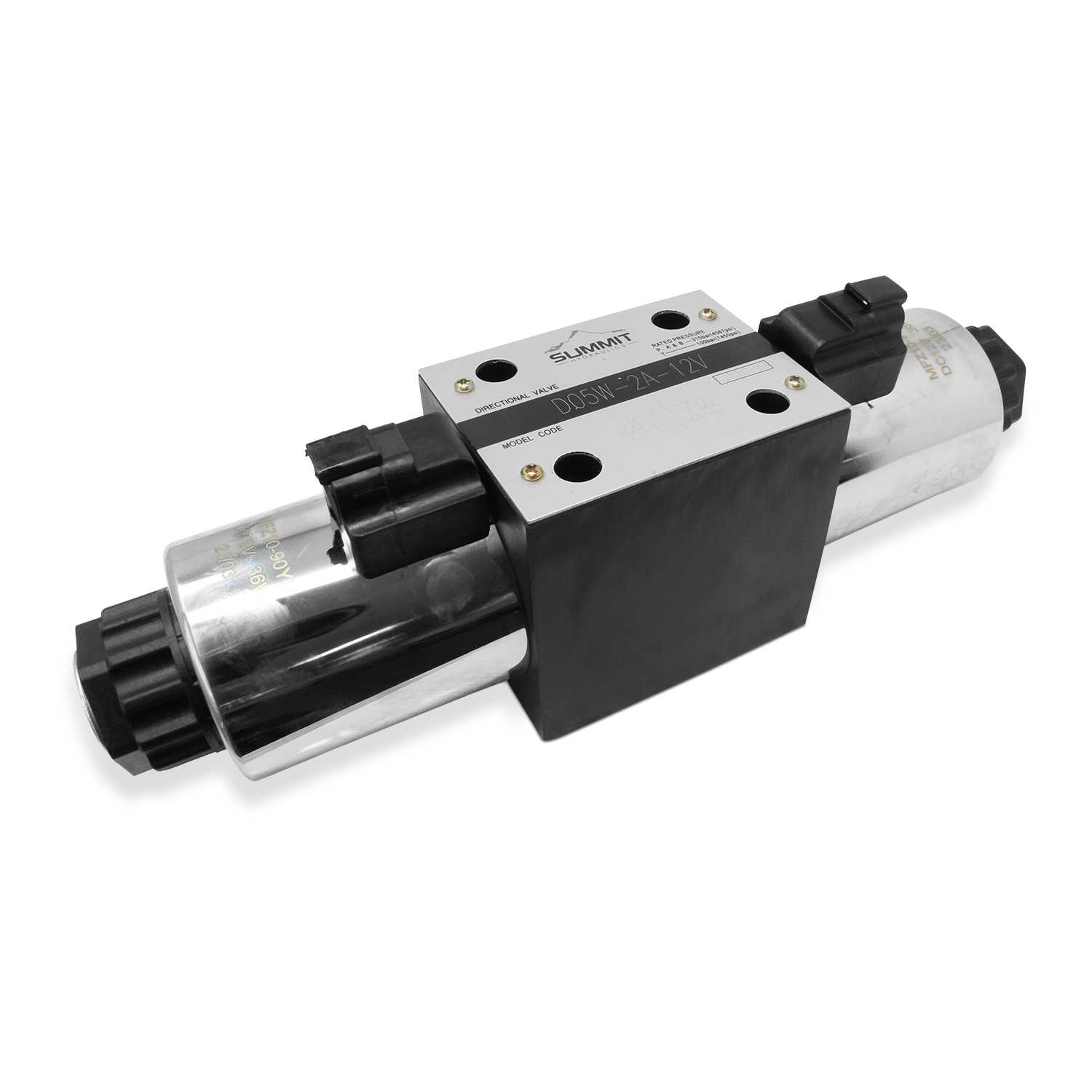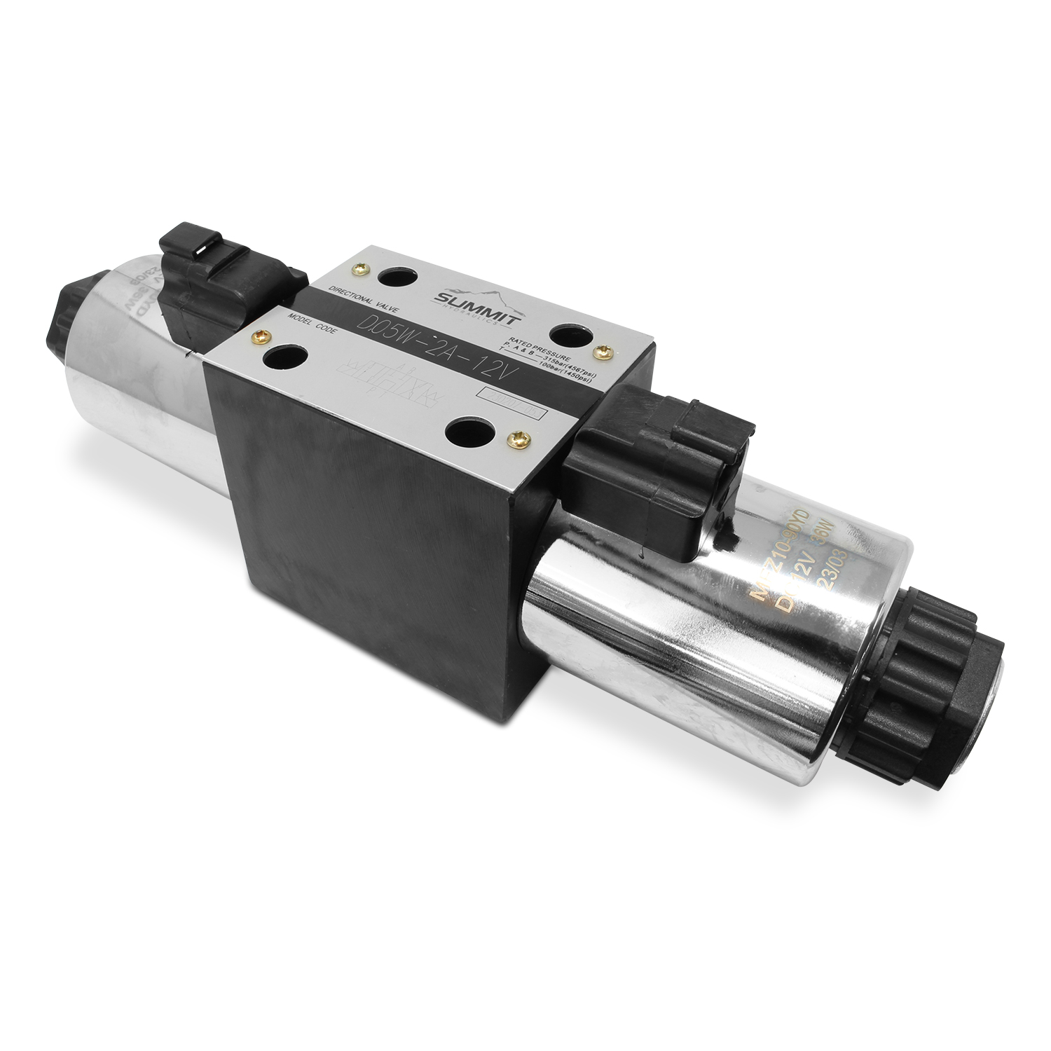 This directional D05 solenoid control valve spool uses solenoids to pull the spool and change the direction of hydraulic oil. This spool directly controls the start, stop and direction of fluid flow. It also can be used as the pilot-operated valve, which could operate other valves. The water-resistant Deutsch connections makes it great for damp environments. DIN connections are also a great option for easy installation.