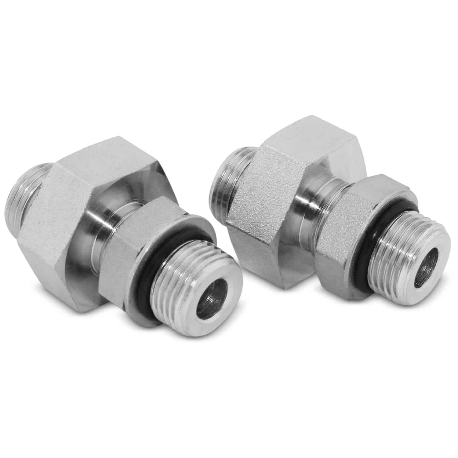 Eccentric fitting set will adjust the spacing of the male couplers from 2″ to 2-1/2″ to allow you to plug a hydraulic multiplier directly into your tractor’s remote outlets.