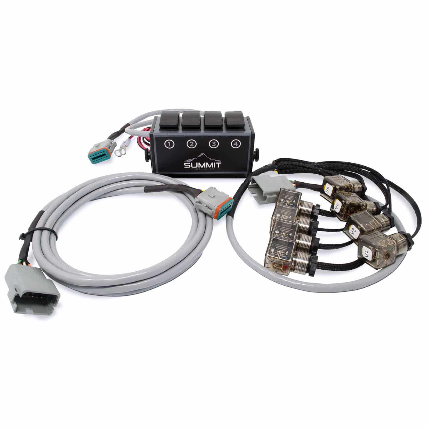 A Electric Hydraulic Double Acting Directional Control Valve, 4 Spool, 15 GPM controls the flow of hydraulic fluid in/out of a hydraulic cylinder or motor (depending on spool type)