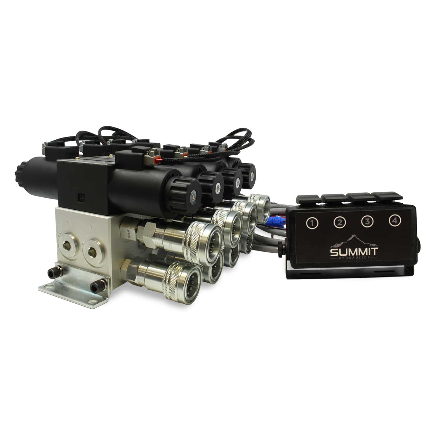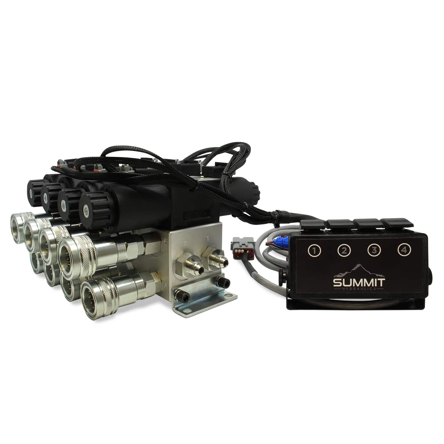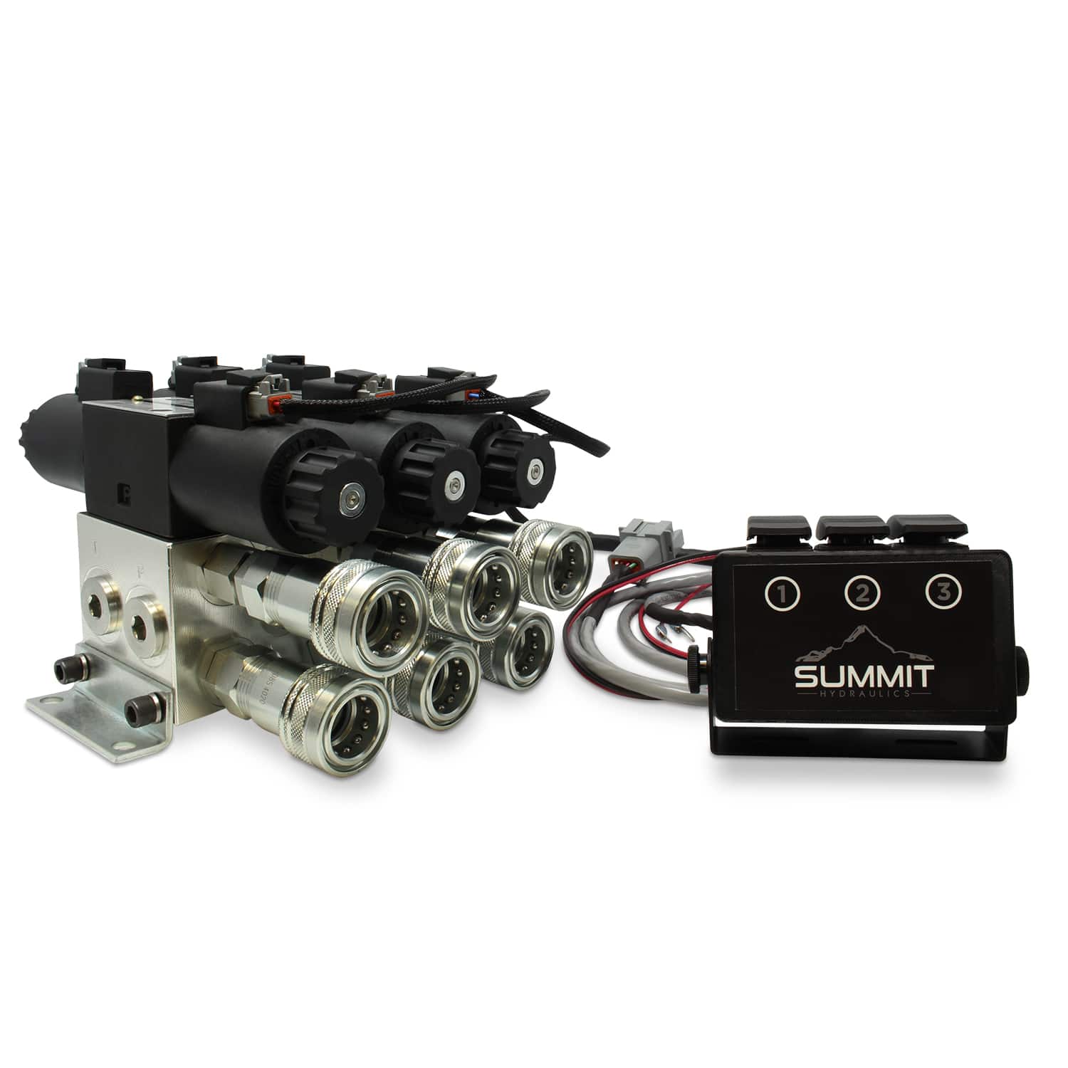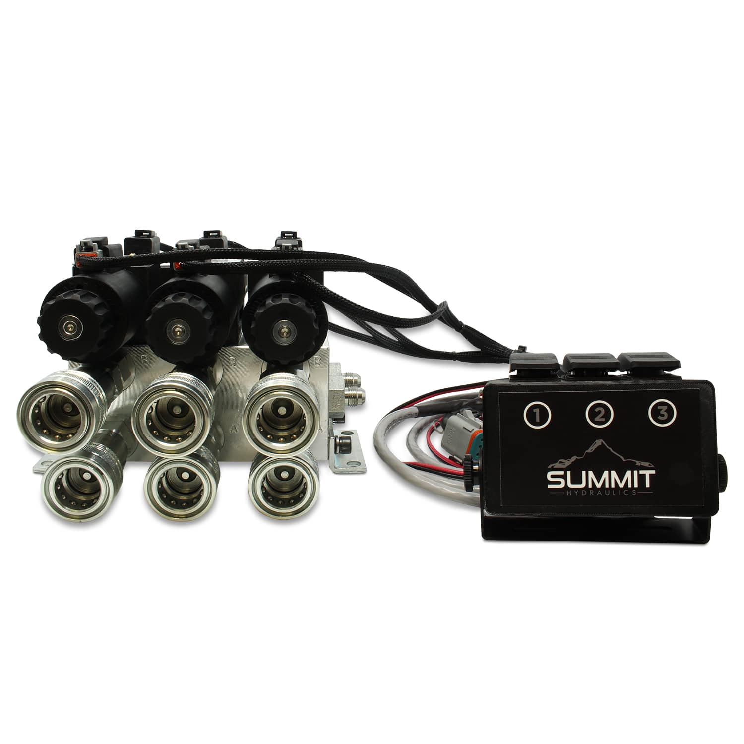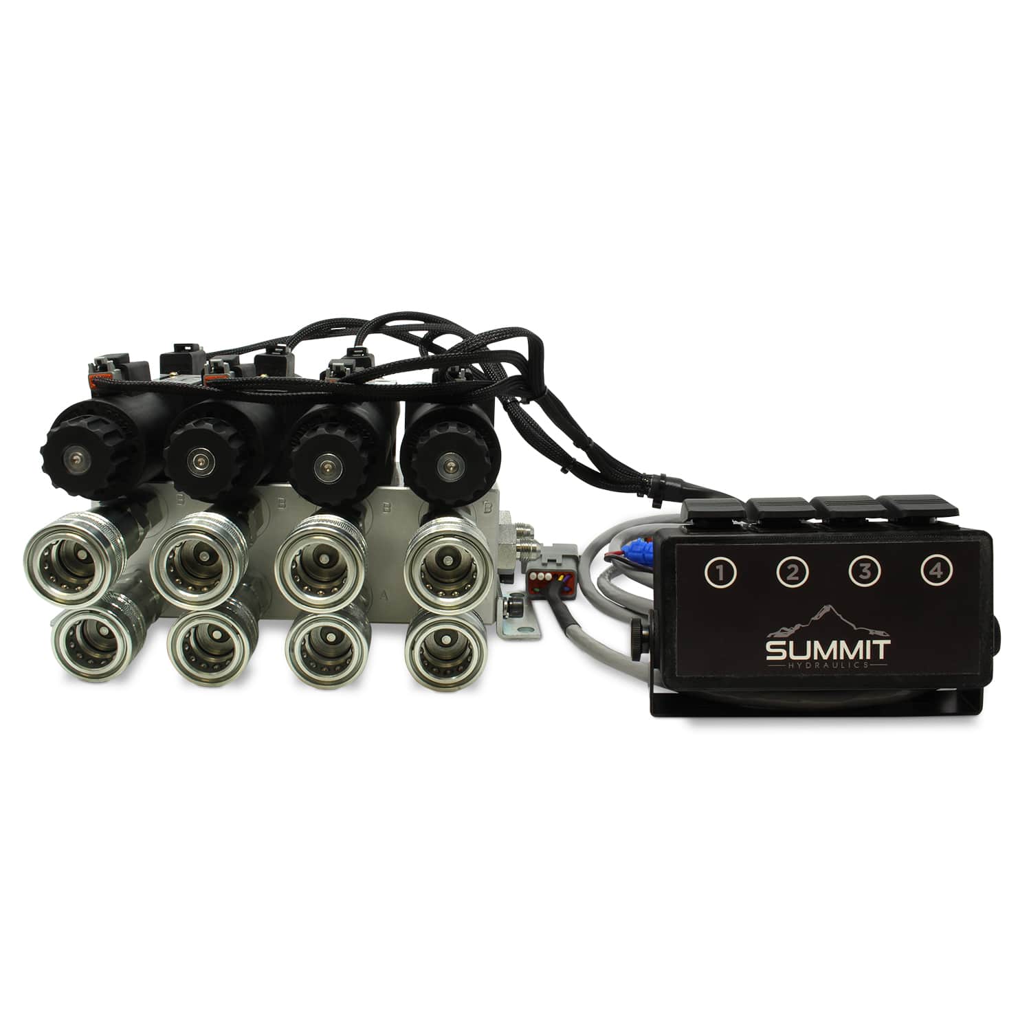 This all-in-one rear remote valve kit is designed to install on your compact tractor (with power beyond kit installed) to add rear remote connections. This allows you to easily control various hydraulic implements using our Summit Hydraulics switchbox controls. You can add two, three, or four rear remote coupler sets to your machine.