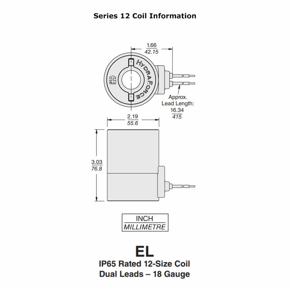 HydraForce 6352012 Solenoid Valve Coil, Wire Leads, 12v DC, 10 Series