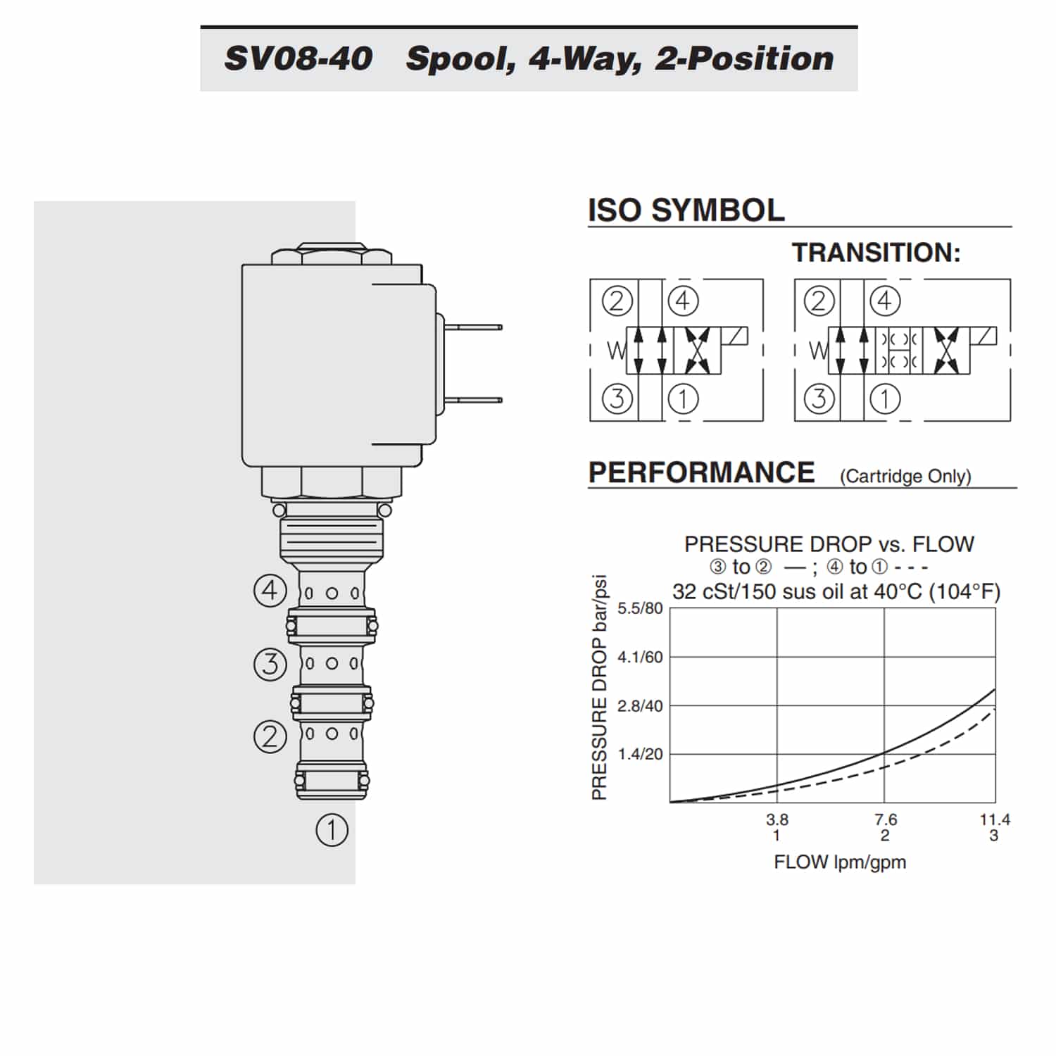 Hydraforce SV08-40-0-N-00 Spool Valve, 4-Way, 3 GPM