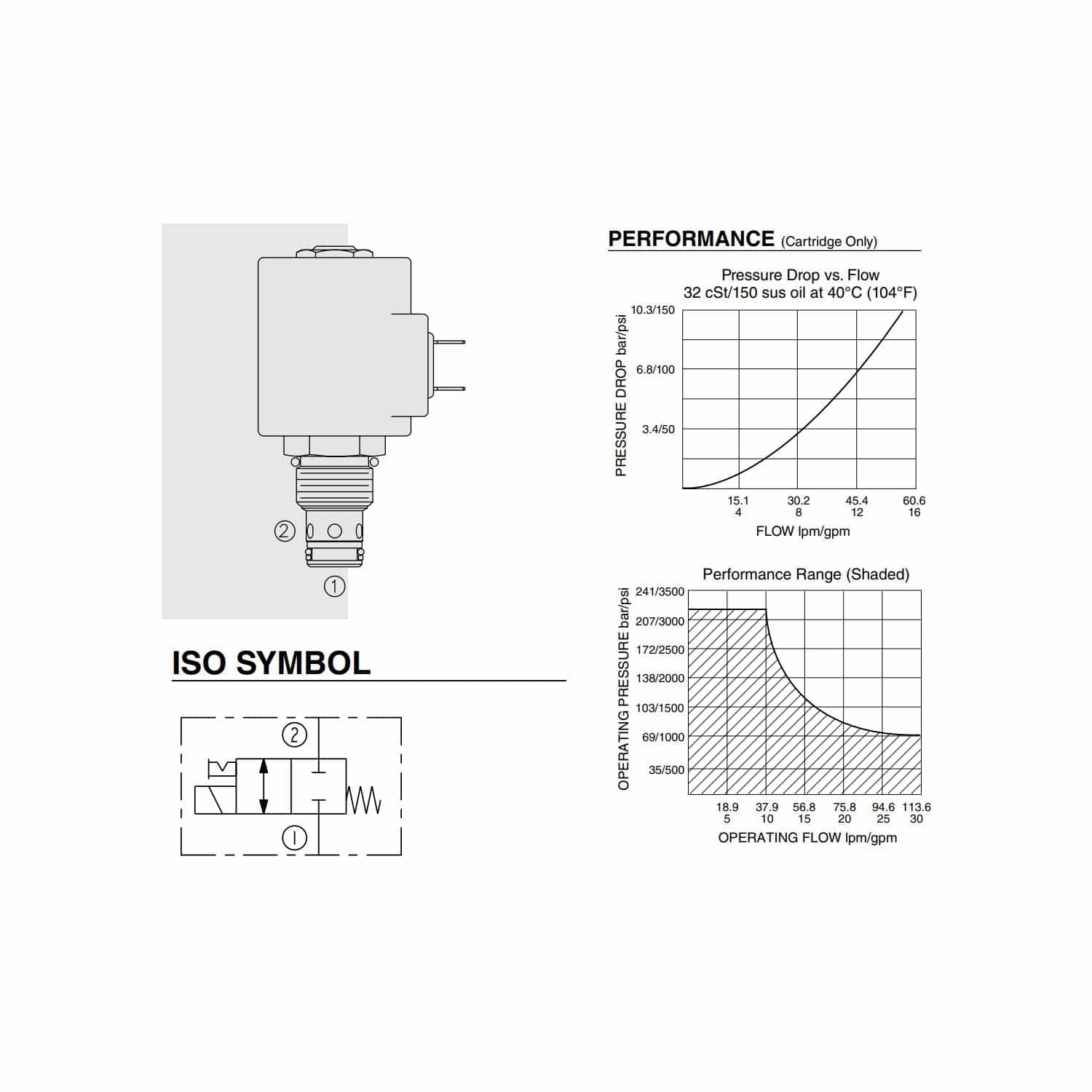 Solenoid-operated, two-port, normally closed, direct-acting, spool-type, screw-in hydraulic cartridge valve, designed to operate as a bidirectional blocking valve.