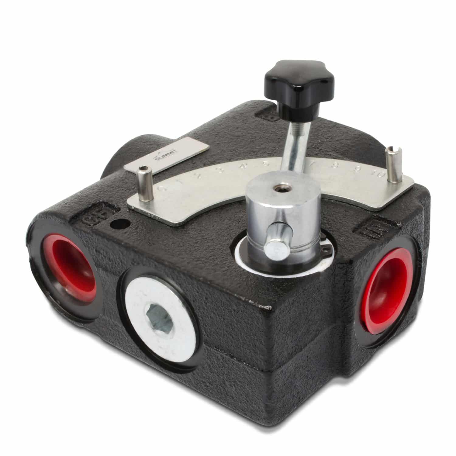 - EX (Excess Flow): Flow coming from this port is pressure compensated. If lever is set to 0 all flow will exit the valve from this port.