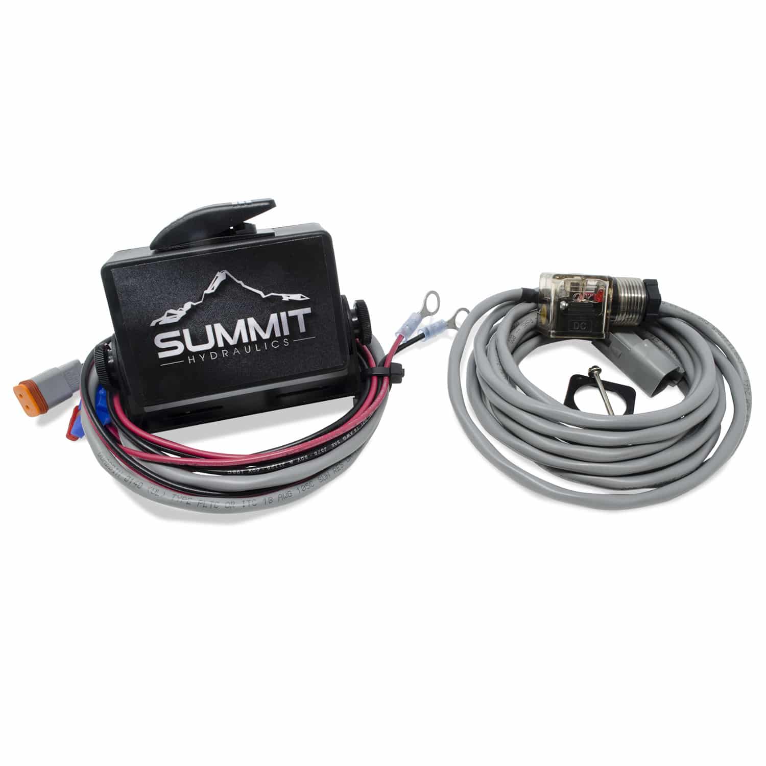 - 1 Switch Box with one momentary rocker switch and 36″ Harness