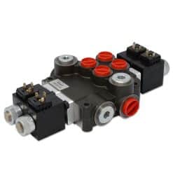 Hydraulic Monoblock Solenoid Control Valve, 2 Spool, 21 GPM
