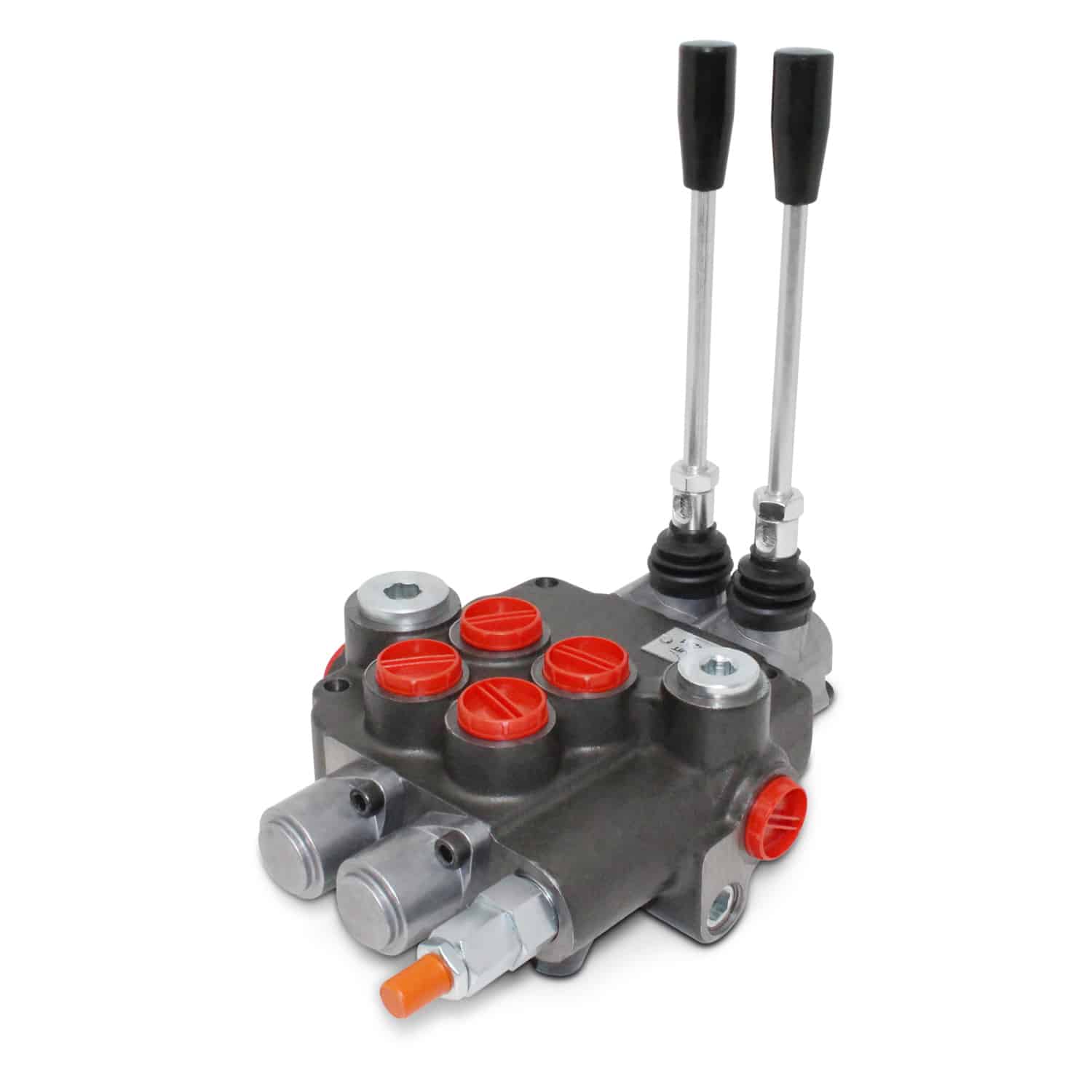The Monoblock Hydraulic Directional Control Valve, 2 Spool, 21 GPM starts and stops fluid flow into hydraulic cylinders or hydraulic motors.