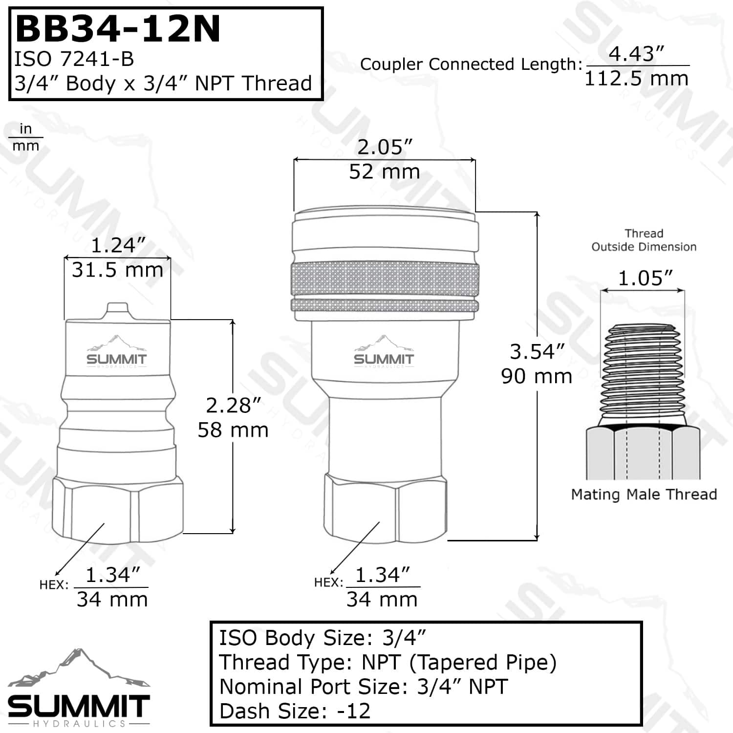 The ISO 7241 B Series of quick disconnect couplers are used on a large spectrum of hydraulic applications with strenuous quality standards such as the aerospace, automotive, electronics industries. They are also recommended for general purpose, machine tools, mobile hydraulics, and other equipment applications. Our Series B couplers are interchangeable with all ISO 7241 B series couplings.