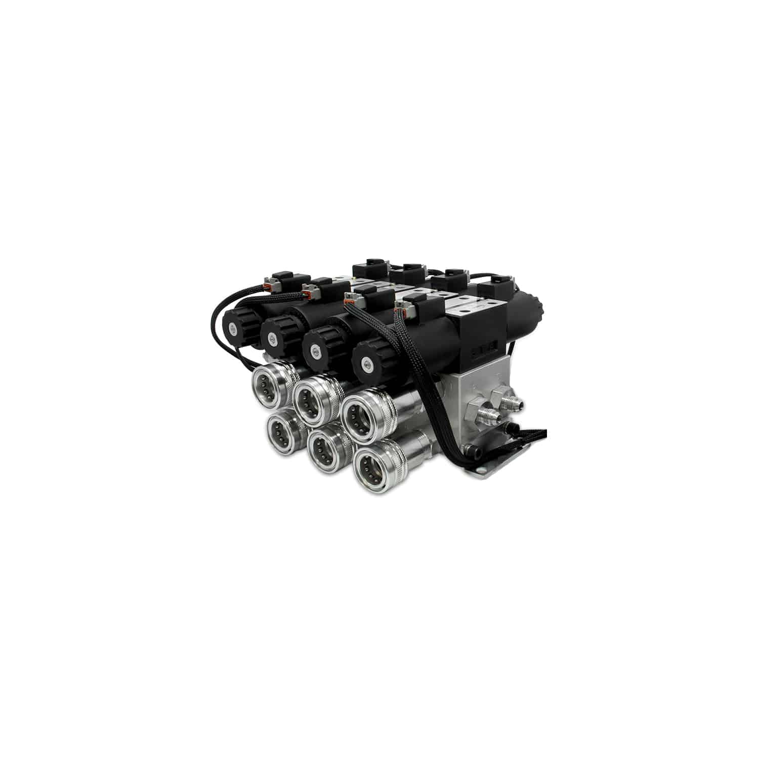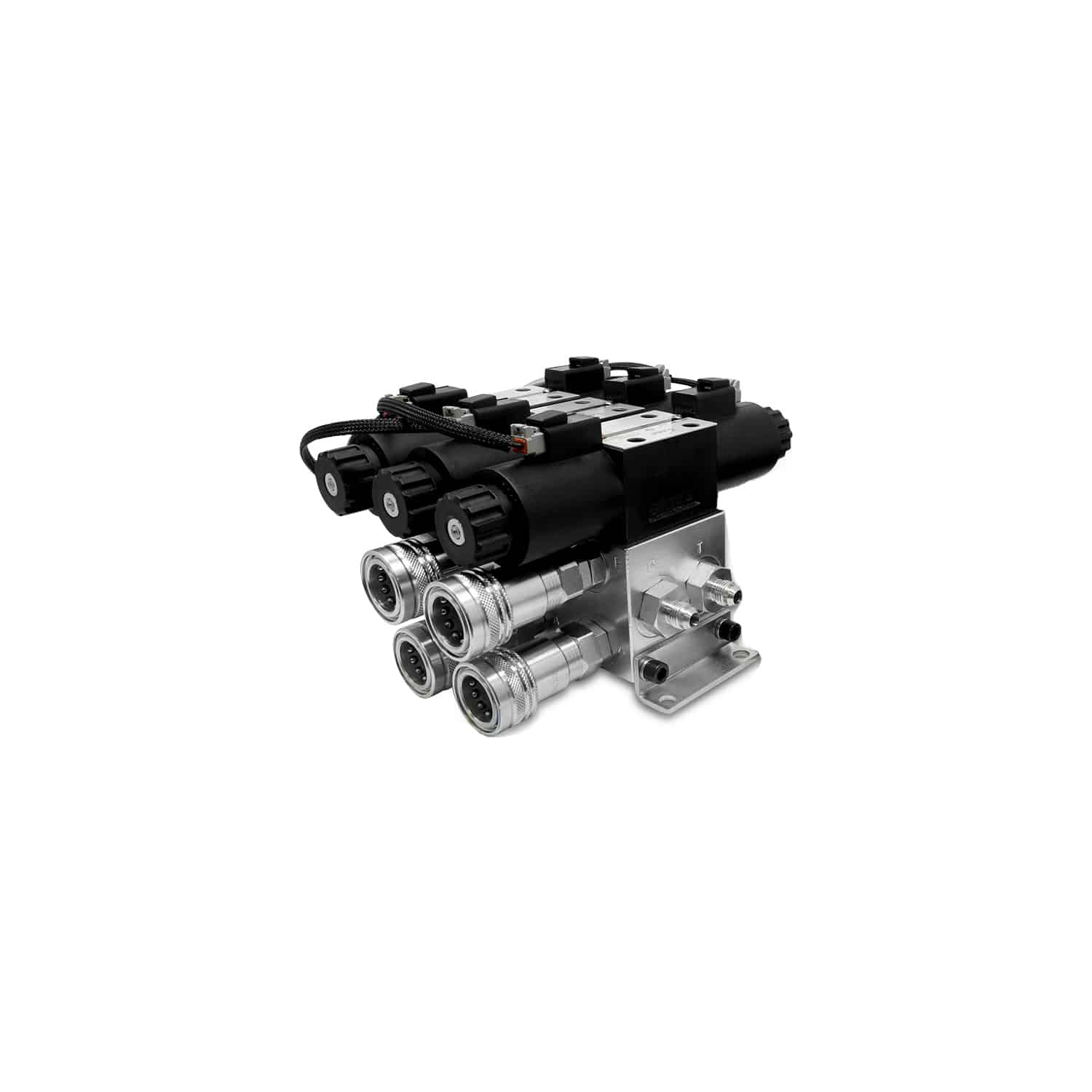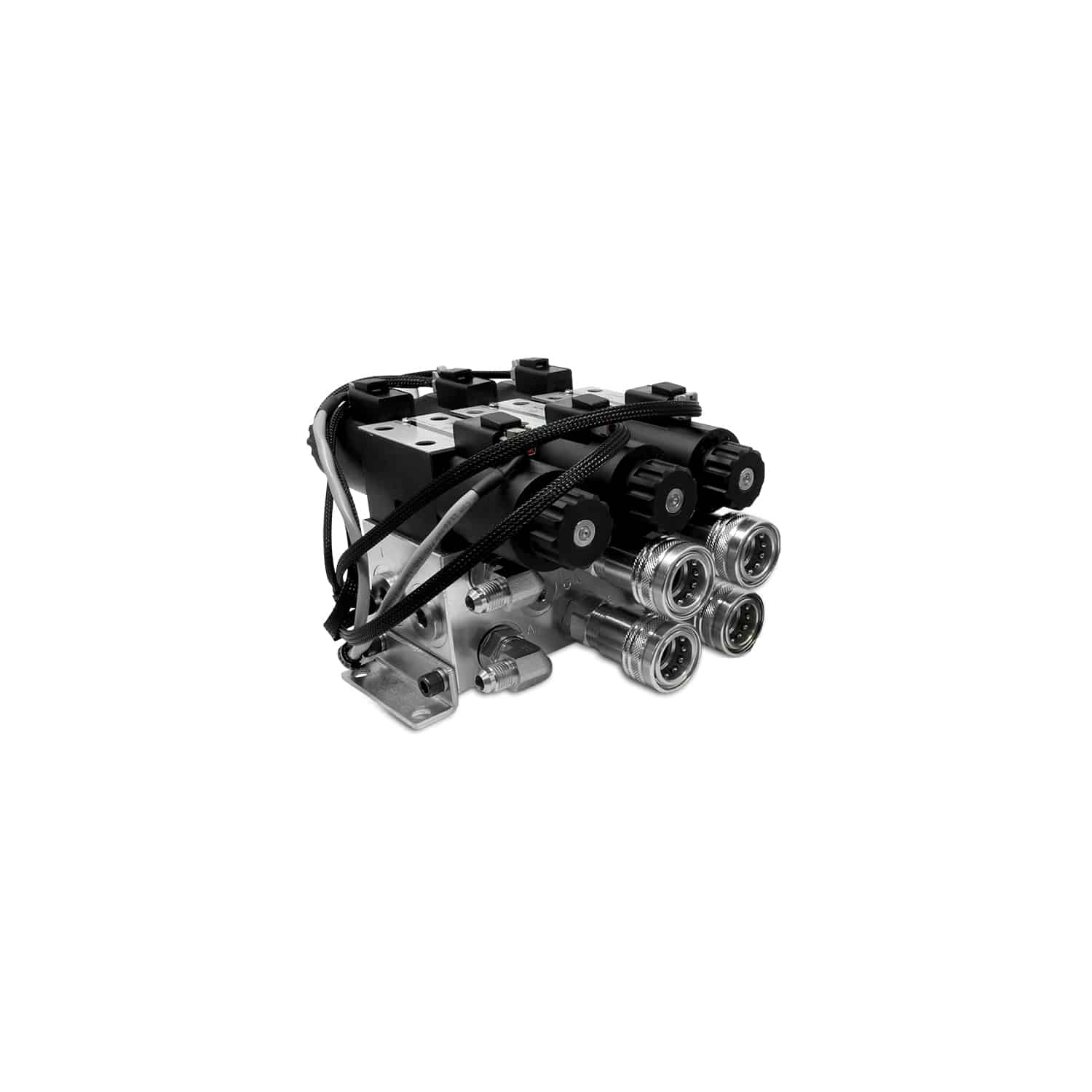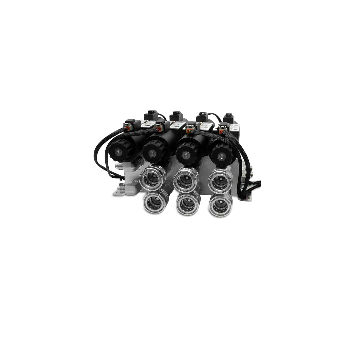 This all-in-one rear remote valve kit with front 3rd function is designed to install on your John Deere 2025R, 2026R Series Tractor (with power beyond kit installed) to add rear remote connections and a third function. This allows you to easily control various hydraulic implements in the front and rear using our Summit Hydraulics joystick and/or switchbox controls. You can add two, three, or four rear remote coupler sets to your machine and a third function in the front.
