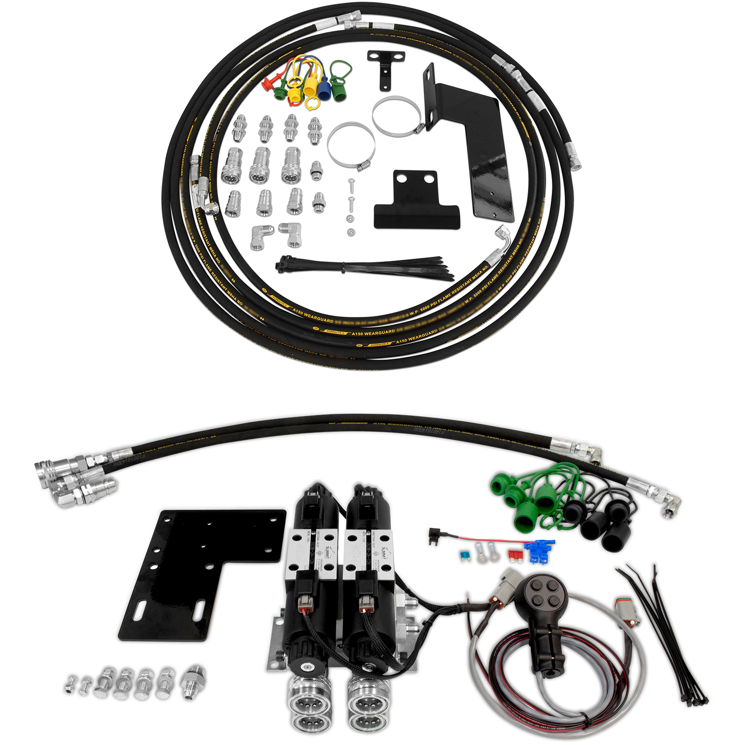 - Hydraulic connection hoses for pressure and return lines and power beyond hookup