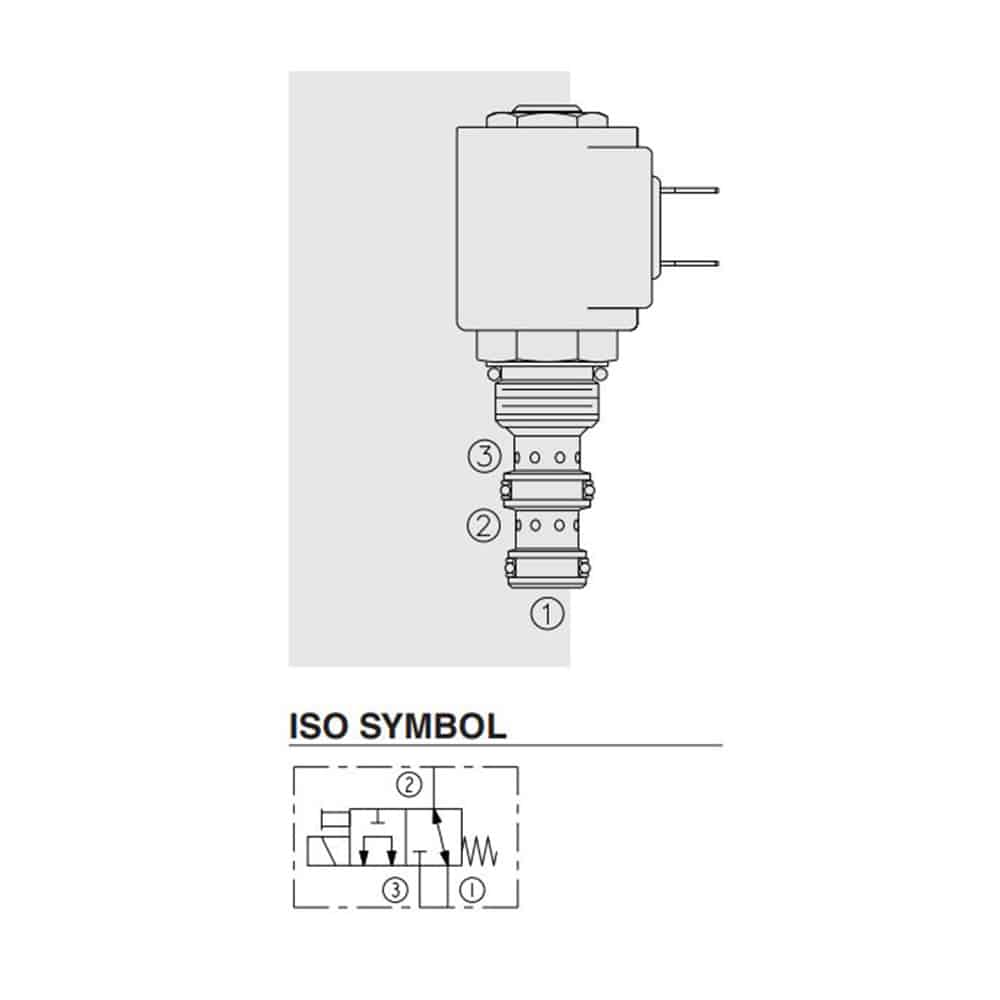 Solenoid-operated, three-way, direct-acting, spool-type, selector valve