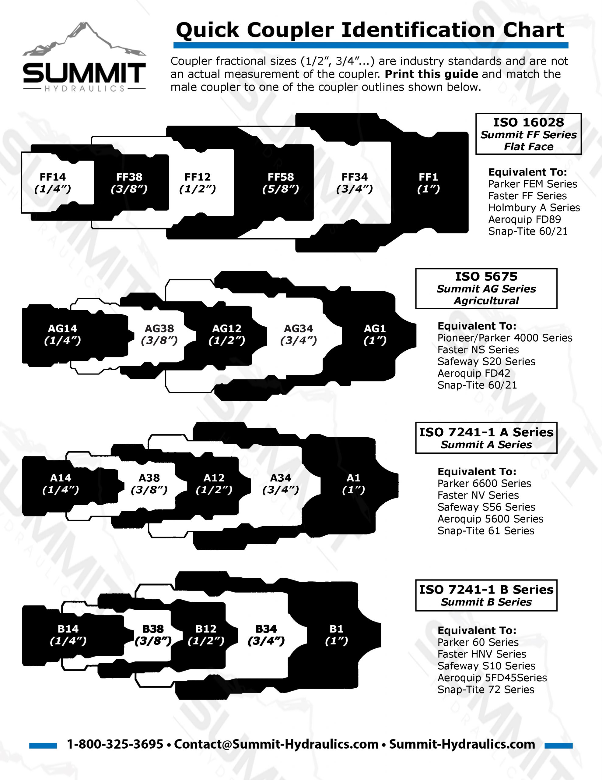 View our Body Size Coupler Chart, to see the dimensions of male flat face, ISO-B, ISO-A, and agricultural style couplers.